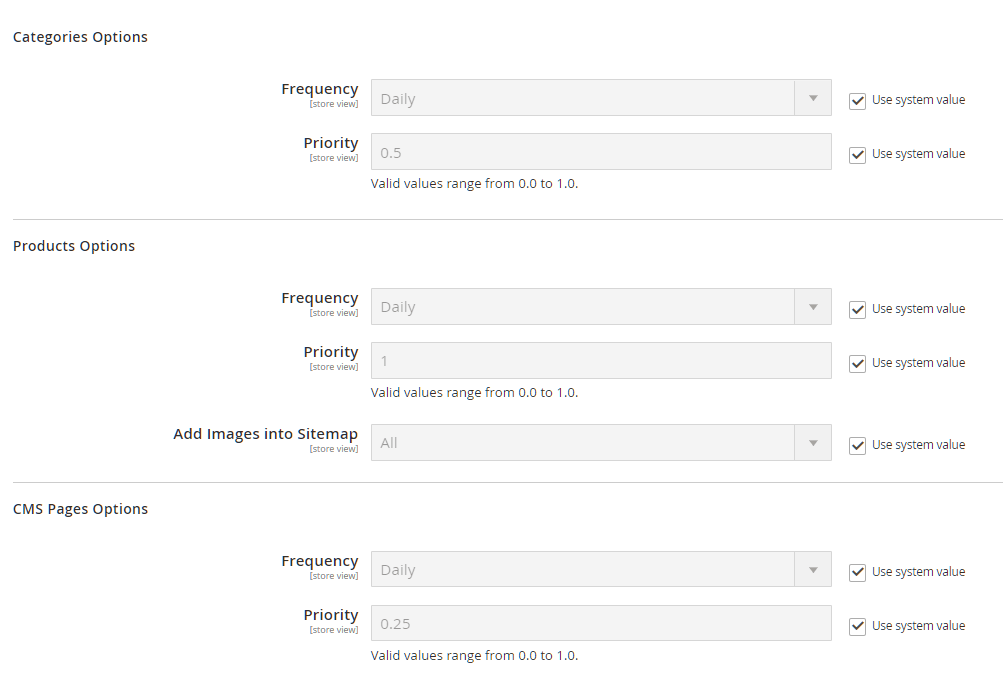 由于站点地图的大小和每个站点地图的URL数量受到限制,因此最好检查一下Magento 2后端中的站点地图文件限制设置是否正确。