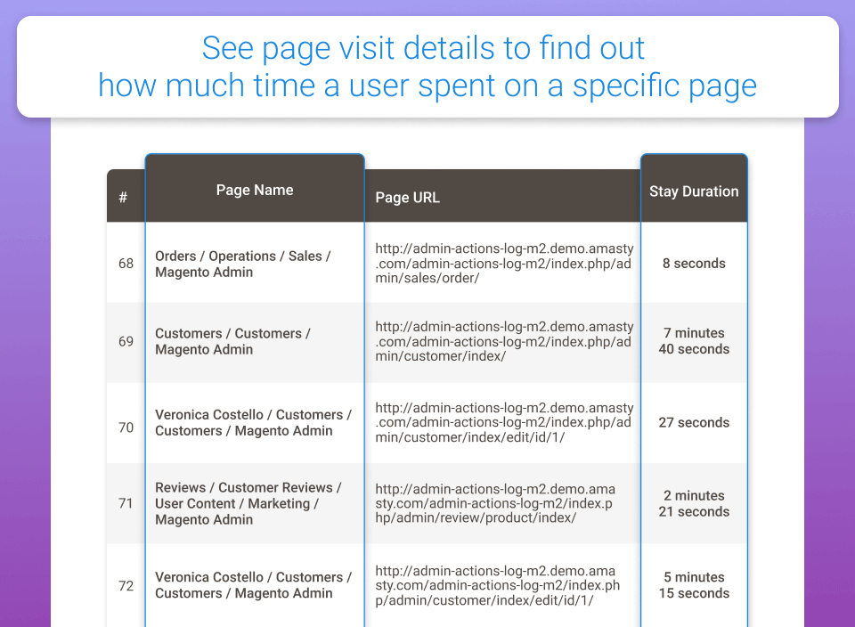 | 演示站 | https://admin-actions-log-m2.magento-demo.amasty.com/admin/amaudit/actionslog/index/ |