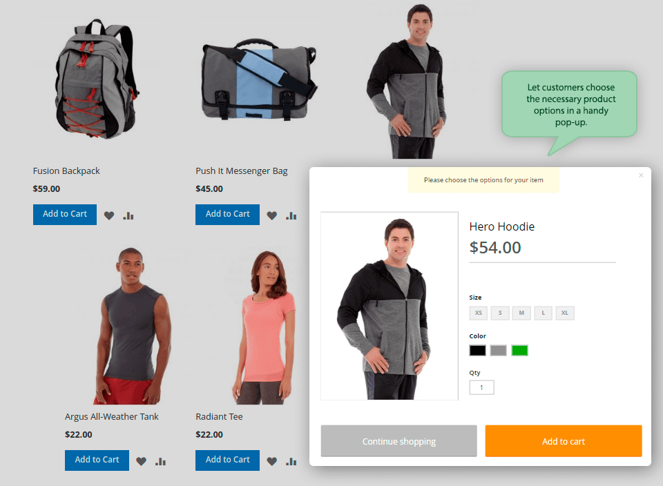 Magento 2 AJAX添加到购物车扩展中,可提供舒适的购物体验。客户可以轻松地选择可配置选项并在弹出窗口中编辑项目,而不会浪费时间重新加载页面。