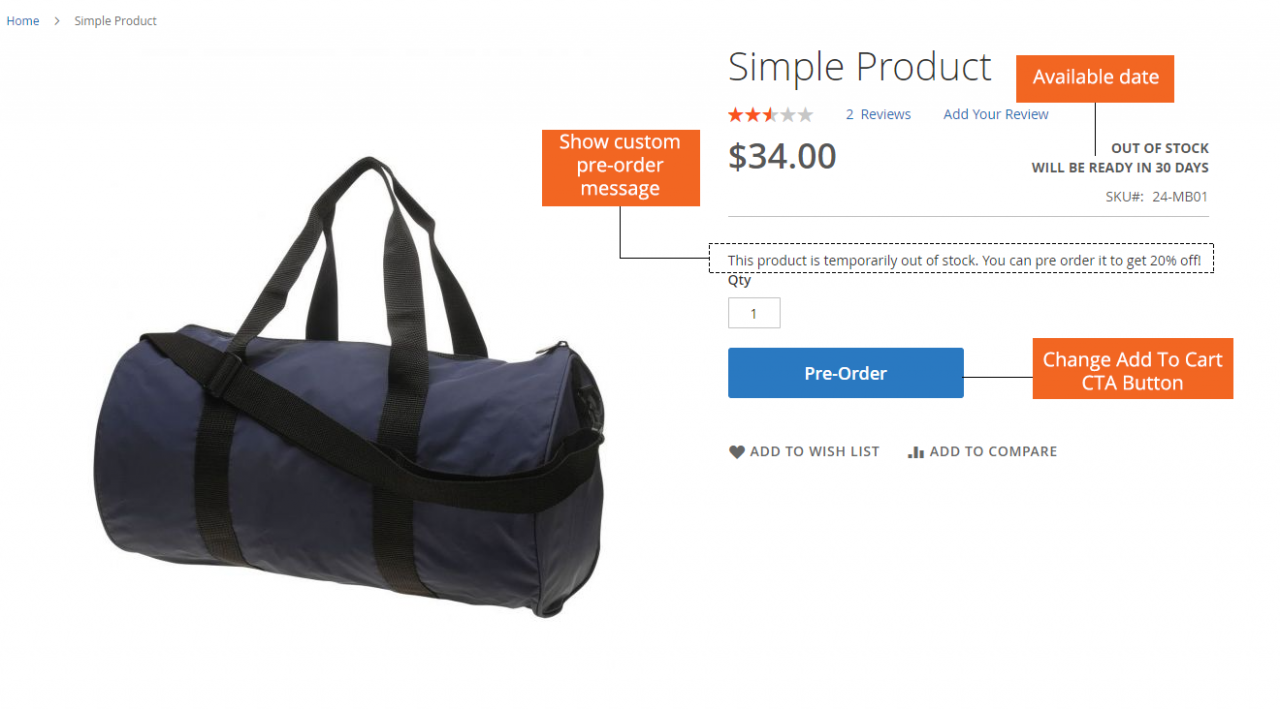 | 演示站 | http://pre-order.demom2.bsscommerce.com/joust-duffle-bag.html |
