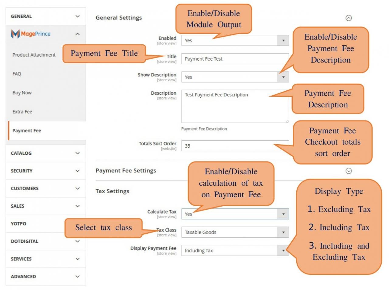 根据付款方式,有多种方式可以按百分比价格、固定价格、每行和每件来计算付款费用。付款费用标题和描述可从管理员配置。在指定的最大订单金额后可以禁用支付费用。您可以从配置设置中设置支付费用是否可退还。您还可以设置默认付款费用,作为订单的额外费用。付款费用也可能仅限于特定商店或客户群。管理员可以通过Admin->Configuration->MagePrince->Payment Fee访问支付费用配置。