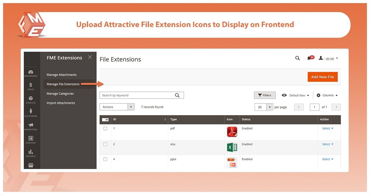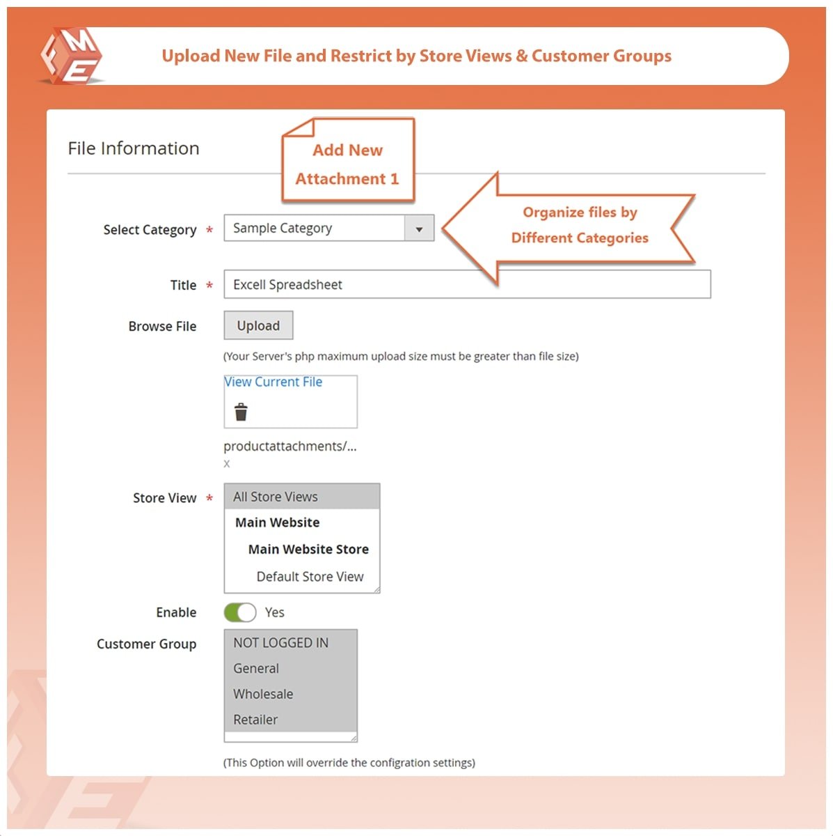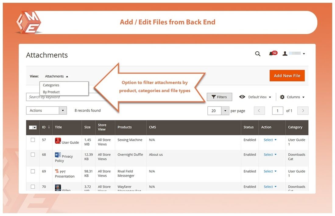 Magento 2产品附件扩展程序使您可以将可下载文件附加到产品和CMS页面。附上指南,教程,手册,保修,政策和其他相关信息,以提高转化率。您可以上传PDF,DOC,XLS或任何其他文件类型,并添加自定义图标,以使其看起来更有吸引力。