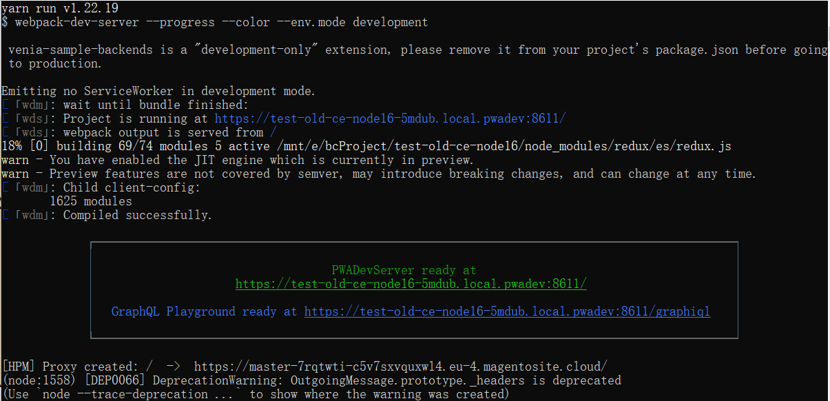 如果以上方法都不能解决问题,你可能需要查看更详细的错误信息来确定问题的原因。你可以运行 yarn watch:debug 来获取更多的 debug 信息。如果错误信息仍然不清楚,你可能需要在 Magento PWA 或者 Webpack 的社区或者论坛中寻求更多的帮助。