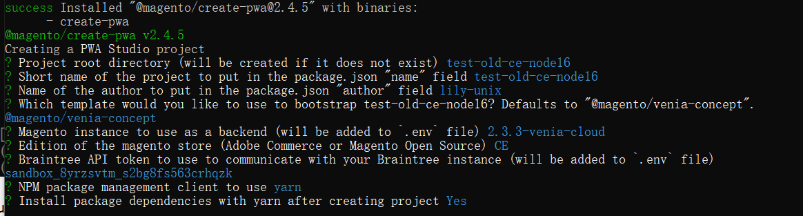 安装命令顺序:yarn create @magento/pwa  ==》  cd pwa-studio-fundamentals ==》 yarn buildpack create-custom-origin ./  ==》  yarn watch