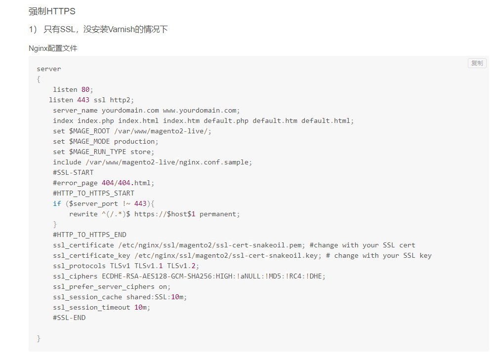 把里面的server listen 80的内容改成443就行了,加ssl进去