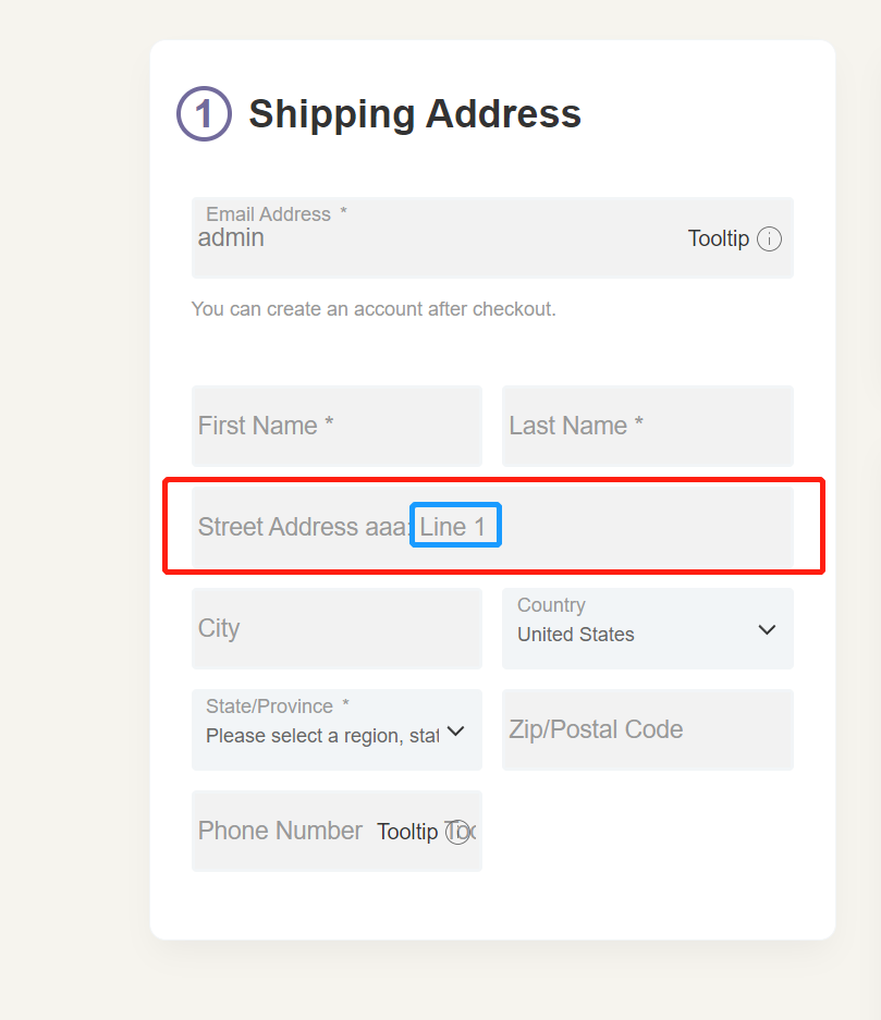 请问升级magento2.3.7后,购物车结算页面--收货地址--placeholder:如何去除Line1文字?