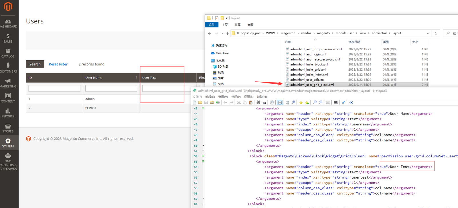 版本:magento2.3.7 已在layout文件下面的grid_block.xml新增了自定义字段,